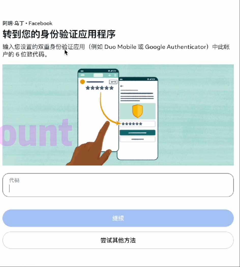 快速复制6位或8位码,粘贴到Facebook输入框(每个码有效期约60秒,过期自动刷新)。