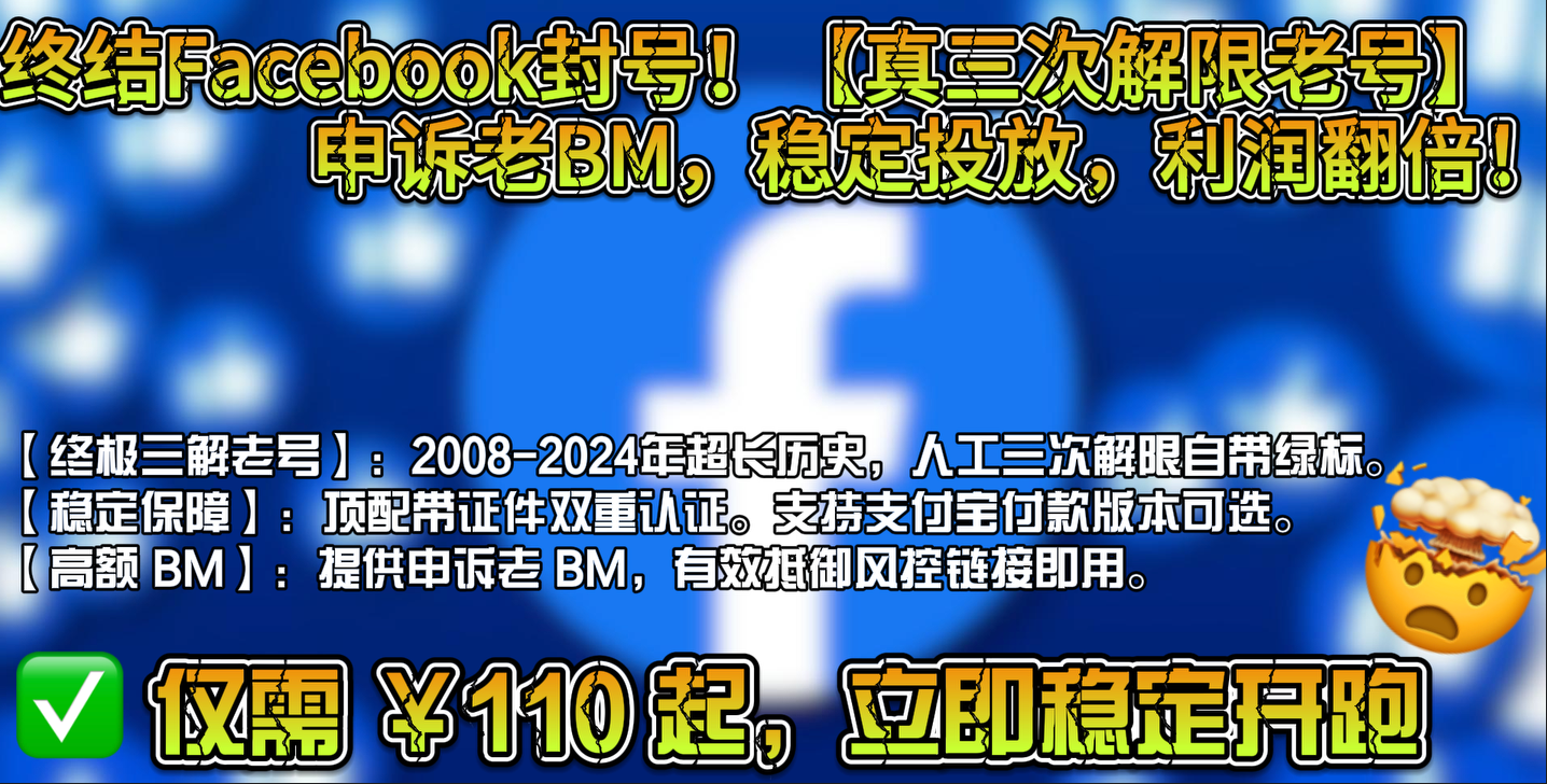 在跨境电商的战场上,Facebook广告账户的稳定性和高限额是决定您能否抢占流量、能否跑出爆款的核心武器。是否受够了新账户频繁被封、限额低、影响预算消耗进度的窘境?本文将直击Facebook广告投放的硬性痛点,深入解析“二次解限”“三次解限”等关键概念的价值,并提供来自 TGX账号出售平台 的顶配、耐用广告账户选购指南,助您实现ROI的爆炸式增长。