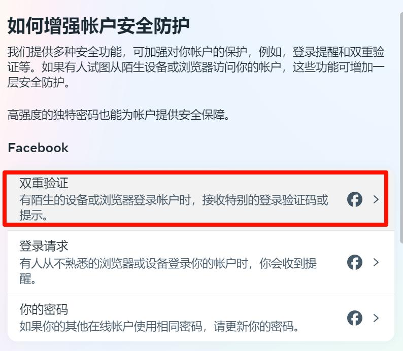 修改完成后,立即开启两步验证,强烈推荐使用 Google Authenticator 或 Meta 最新 Passkey 功能,可大幅降低被盗风险。