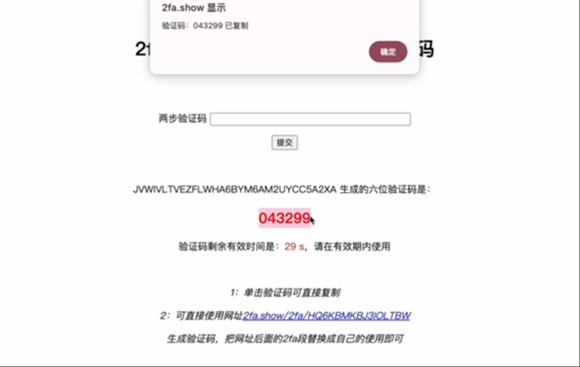 打开2FA接码地址输入 2fa 码
