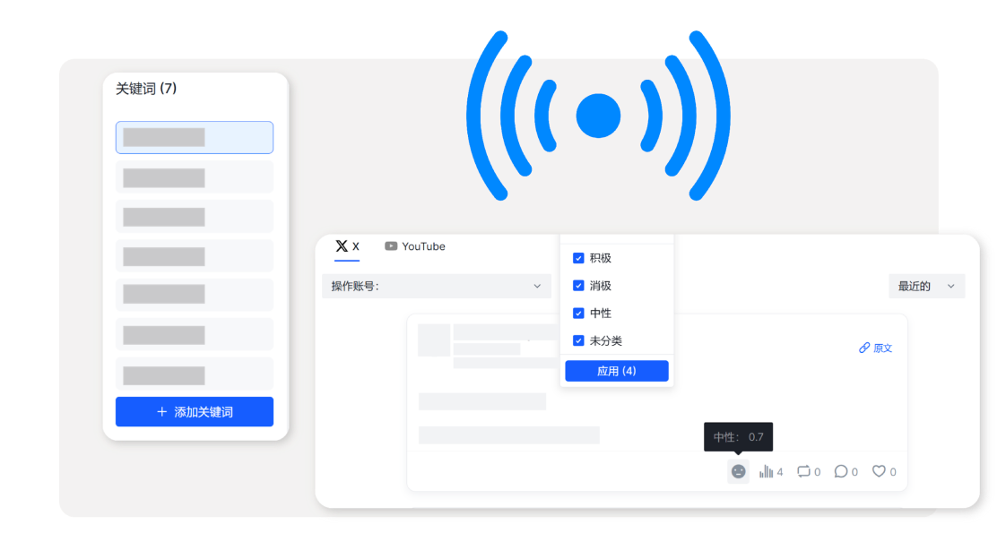 ① 支持多平台关键词自动监测,不错过任何用户反馈或市场信号;