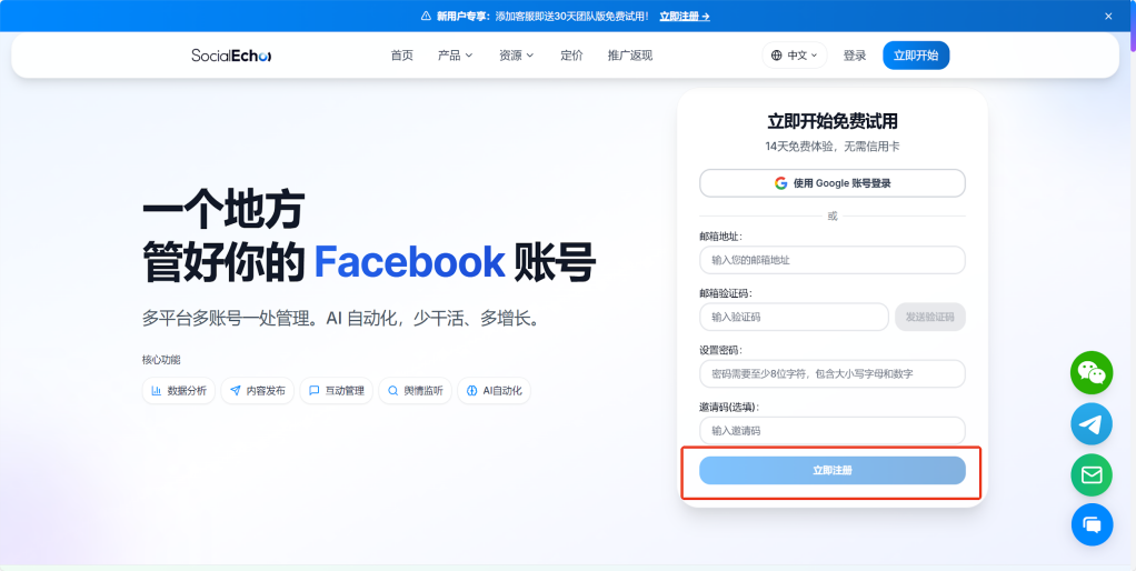 四、如何免费试用SocialEcho?