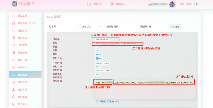 第一步:查看订单以及卡密信息