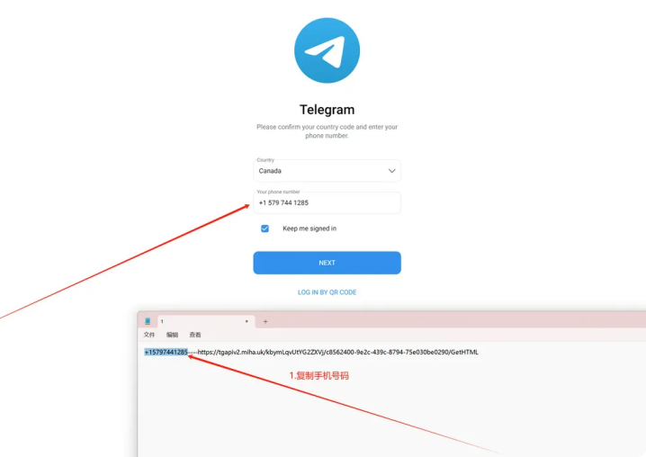 第三步登录账号:打开telegram登录界面,输入手机号码