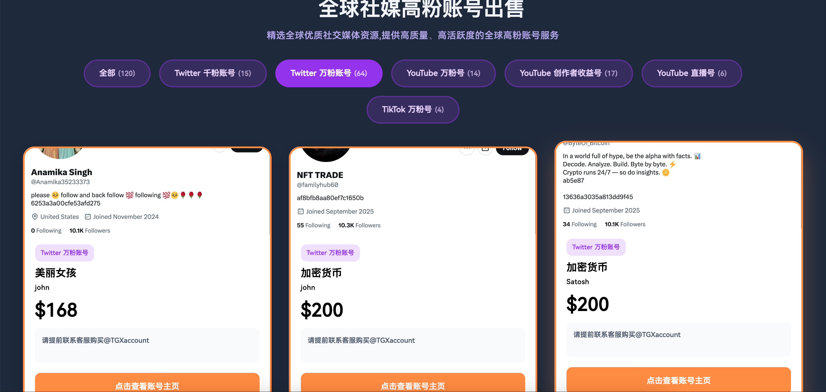 A4:👉TGX account是一站式海外社媒账号出售平台,长期稳定供应真实粉丝的推特高权重账号。