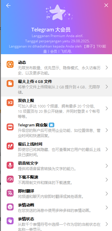 到账确认: 充值完成后,用户立即在 Telegram 客户端收到 Premium 会员激活通知。