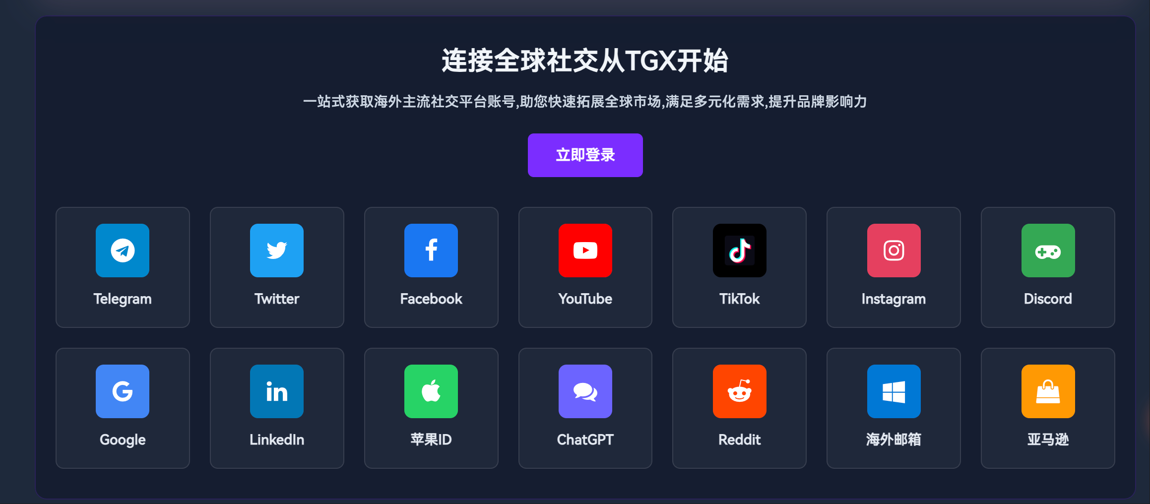 Q6: 除了Twitter老号,TGX还能买其他平台账号吗?