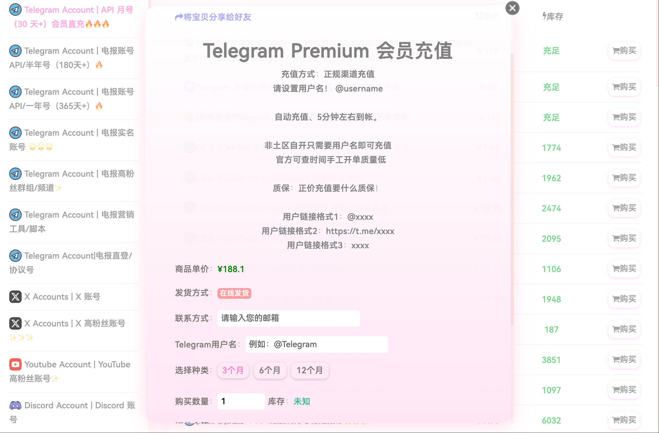 代开商操作: 代开商利用其支付渠道,直接对该用户名对应的账号进行 Premium 会员充值。
