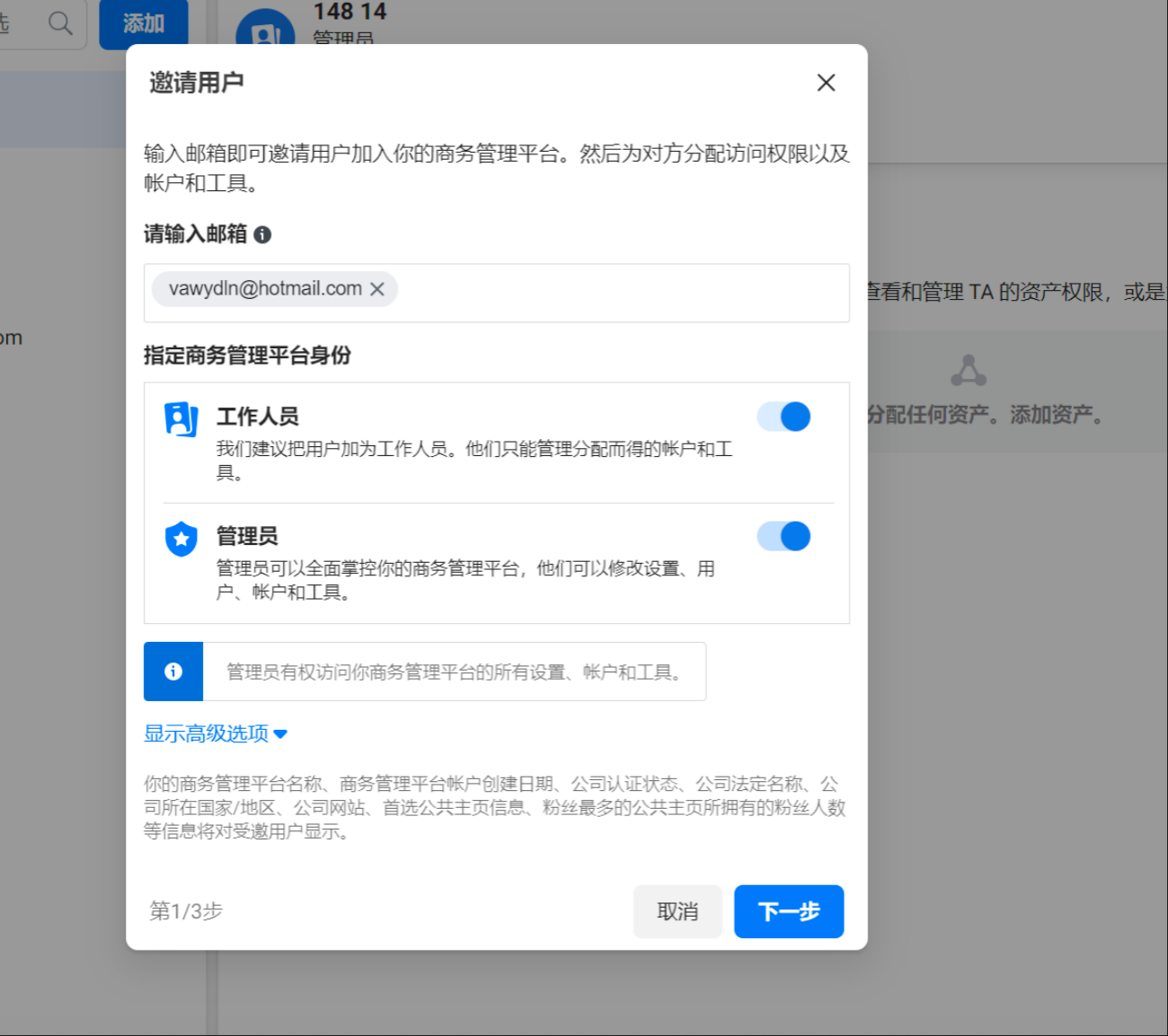 输入邮箱根据需求进行设置管理员权限或者工作人员