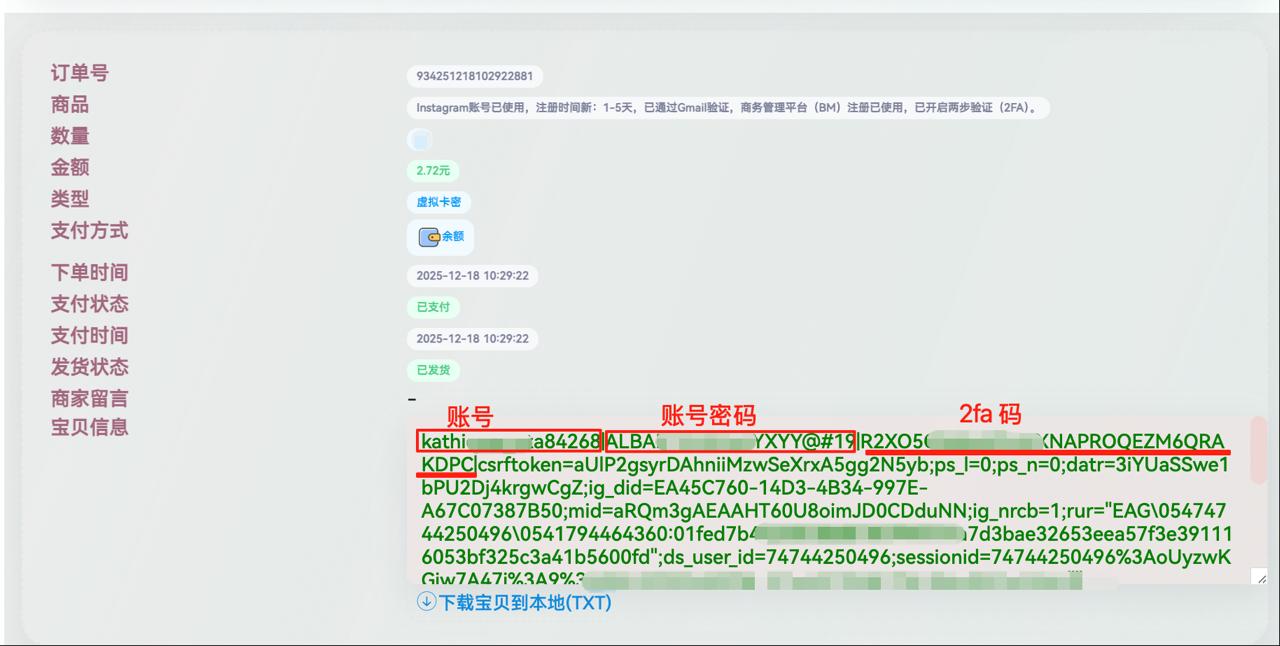 发货卡密格式:账号、密码、邮箱、2fa