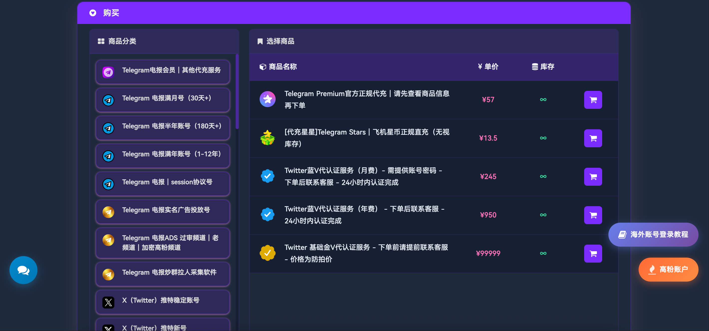 访问 https://www.tgxaccount.com?from=2462,选择Telegram Premium代充服务。