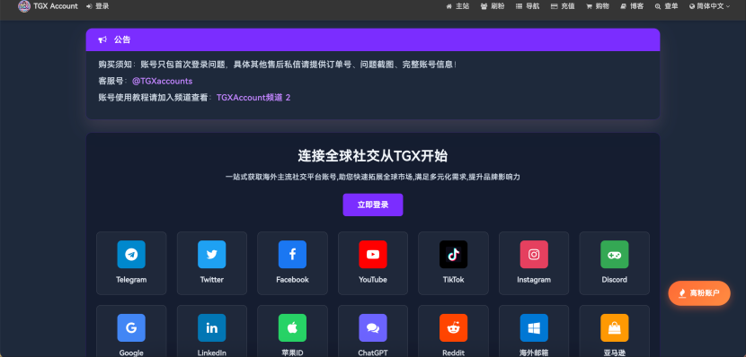 TGX Account 是专为海外社媒运营打造的专业账号采购与批发平台 ,致力于解决海外平台注册难、冷启动慢、成本高等核心问题 。平台覆盖所有主流海外社交媒体平台,是构建全球矩阵的重要资源来源 。